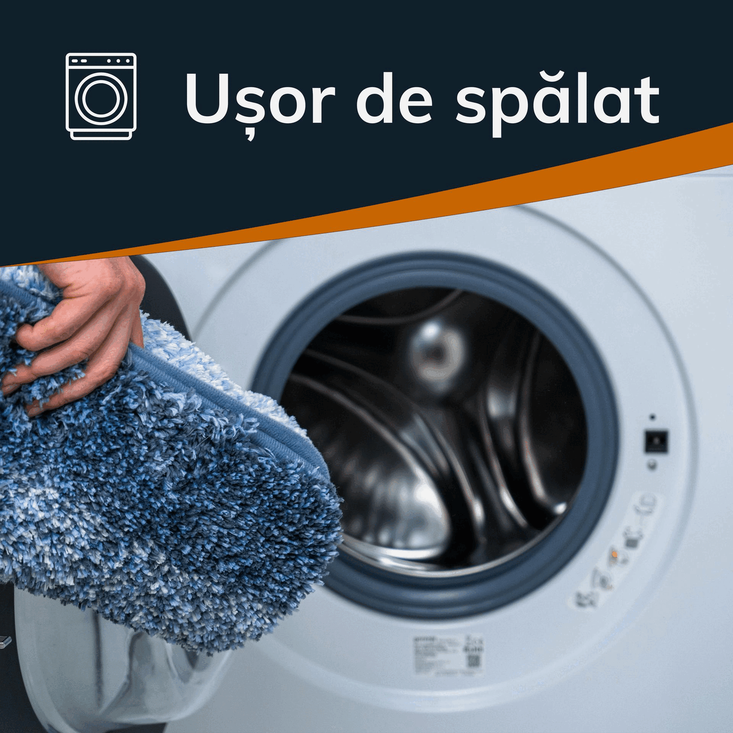 Covorașul de baie Velara este super ușor de curățat. Spală-l la mașină cu apă rece și detergent ușor. Nu folosi clor sau înălbitor. Usucă-l la viteză redusă sau atârnă-l pentru a se usca. Culoarea nu se estompează, rămânând frumoasă și vibrantă mulți ani.